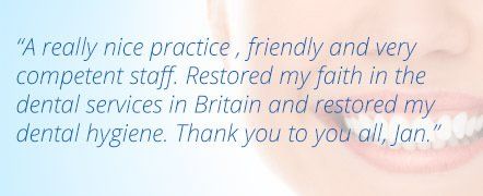 " As usual I recently had a first rate visit to both the hygienist and the dentist. They combine professional competence with great customer care - explaining what they are doing and why. I leave confident that my teeth are being well looked after.